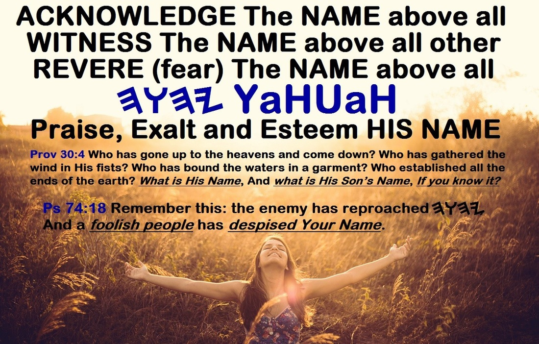 Isn’t it also true that all other “gods” are KNOWN BY THEIR NAMES? Why then is the “ONLY” REAL and TRUE Elohim (Almighty) of all creation not known by His Name by those who say that they love Him?