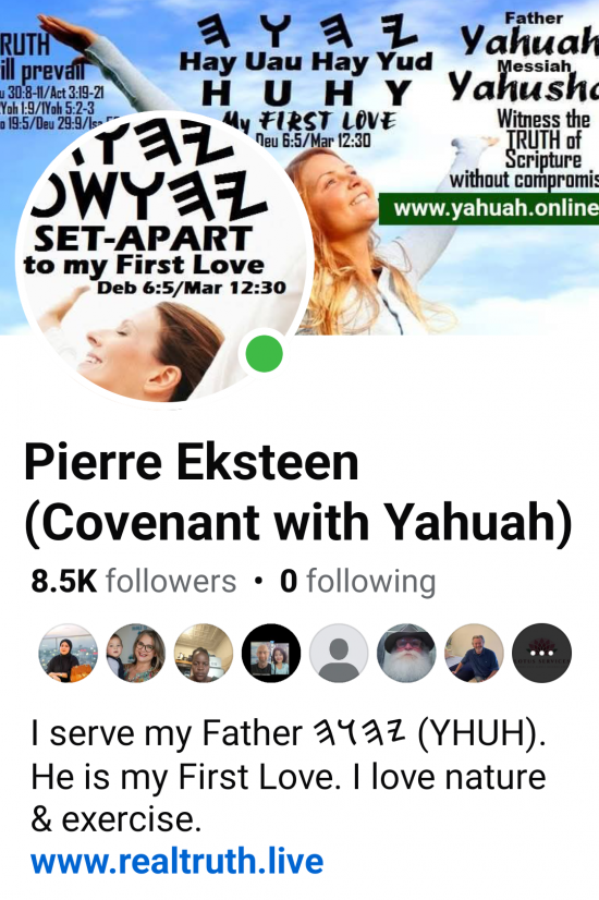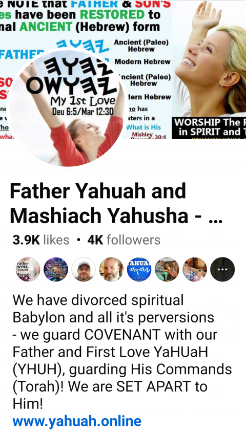 I do NOT CLAIM to know everything, nor do I think that I am better than anyone else. I DON'T promote any form of religion - including Judaism, Christianity, Islam, etc. I promote covenant relationship with Yahuah, through His Son Yahusha, by the power of their Ruach ha'Qodesh (Set-Apart Spirit). I do NOT belong to any sacred names movement, cult, sect, any religious institution, or any denomination.
