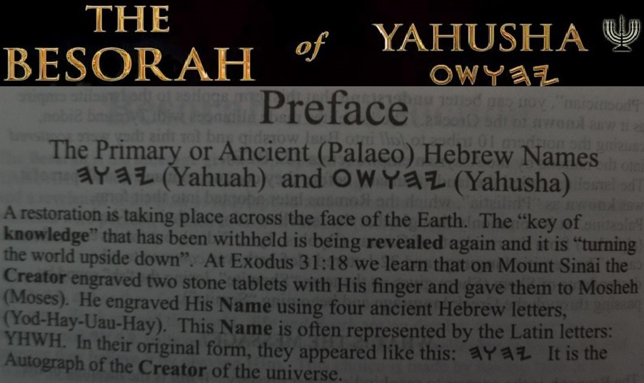 These restored translations have RESTORED יהוה Yahuah and יהושע Yahusha's Names to their ORIGINAL FORM, written in [ancient] Hebrew.